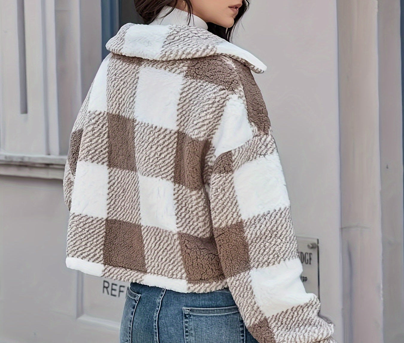 Deze teddy-jas met ruitpatroon houdt je warm en geeft je outfit direct een trendy upgrade.